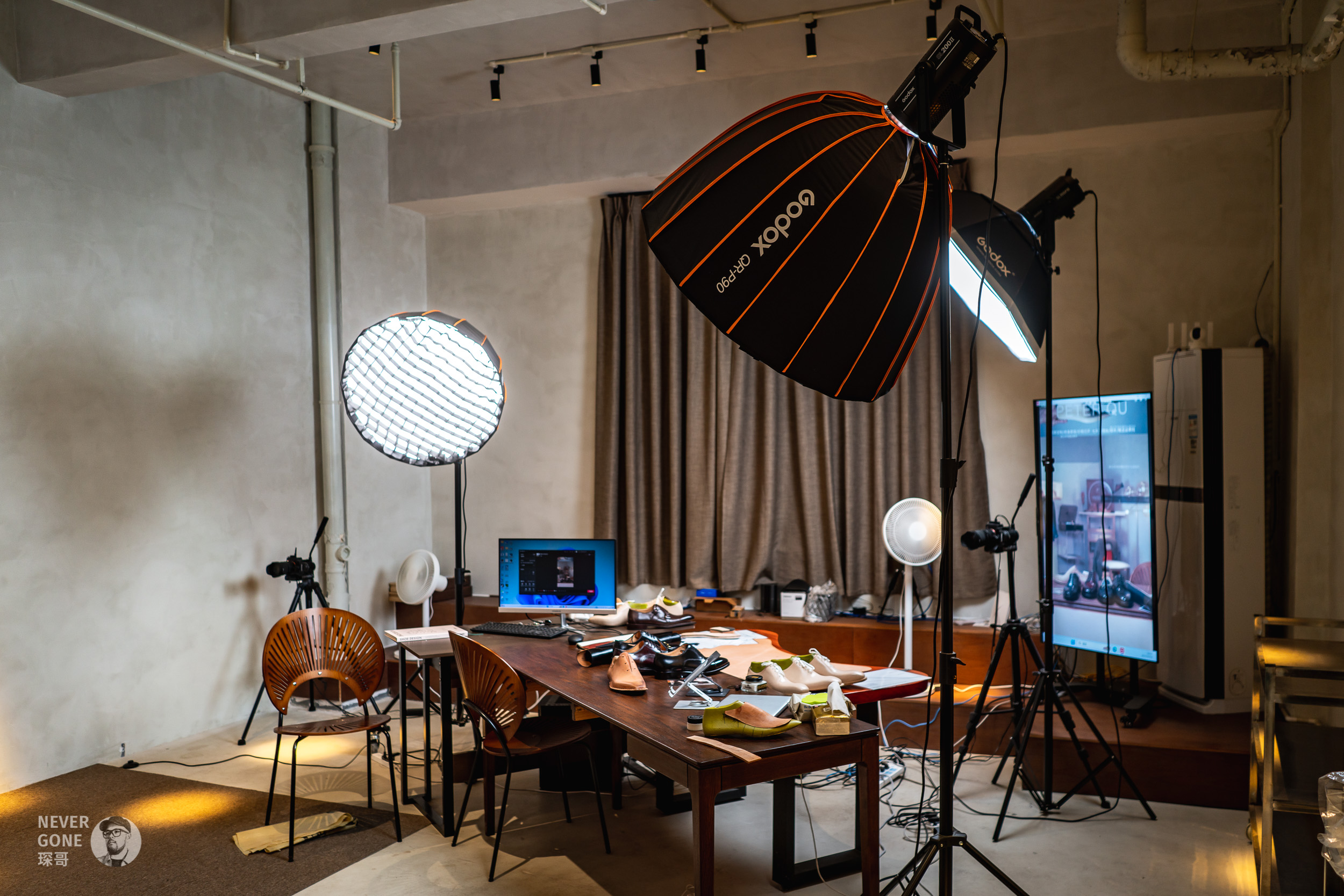 桌上摆放着各种中间步骤的鞋子,直播的时候可以迅速给客人进行结构工艺科普