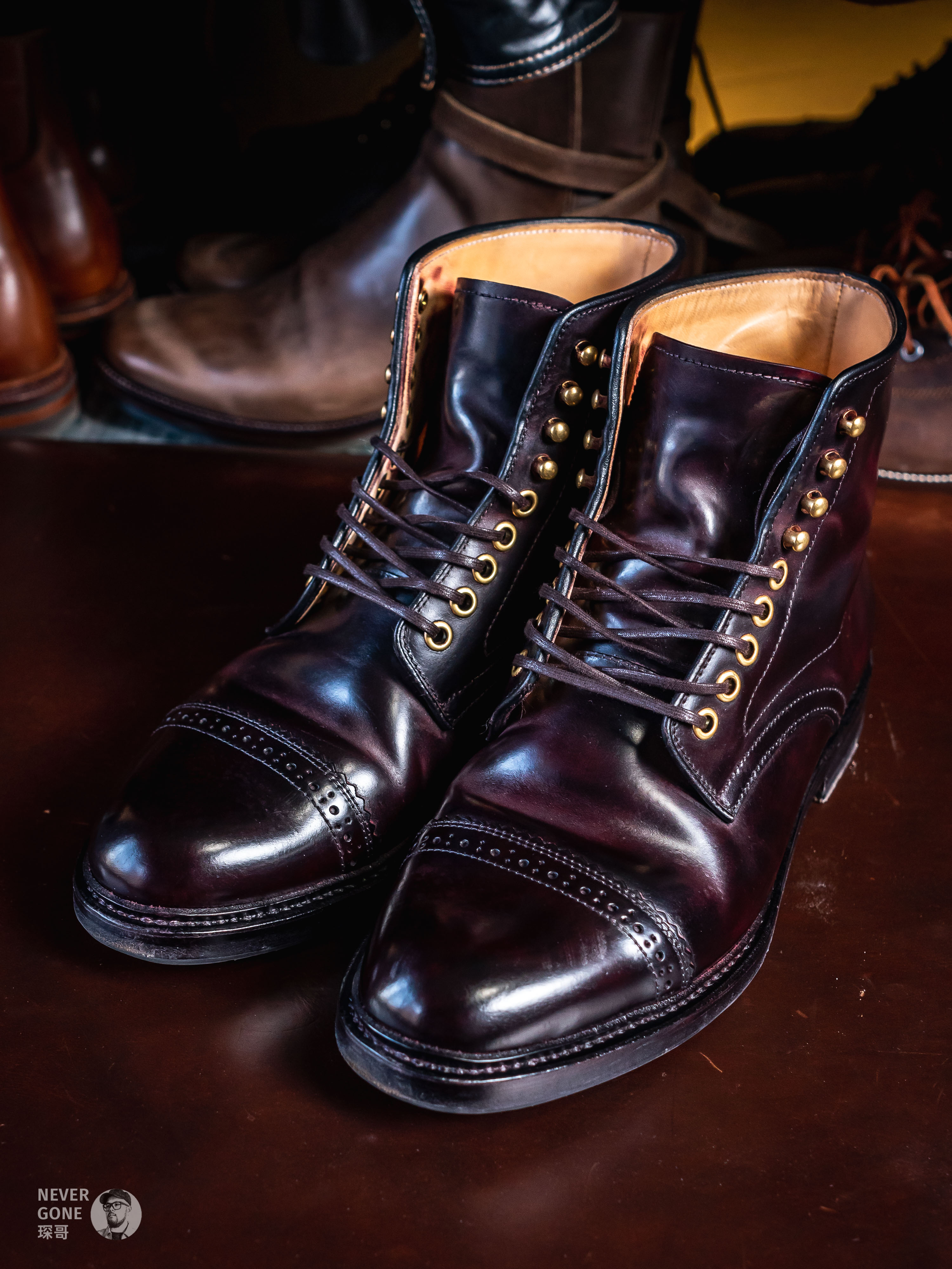 这个款是比较基础的雕花盖头军靴,在很多1950年代的靴子上都能见到这种版格,比较日常好搭配