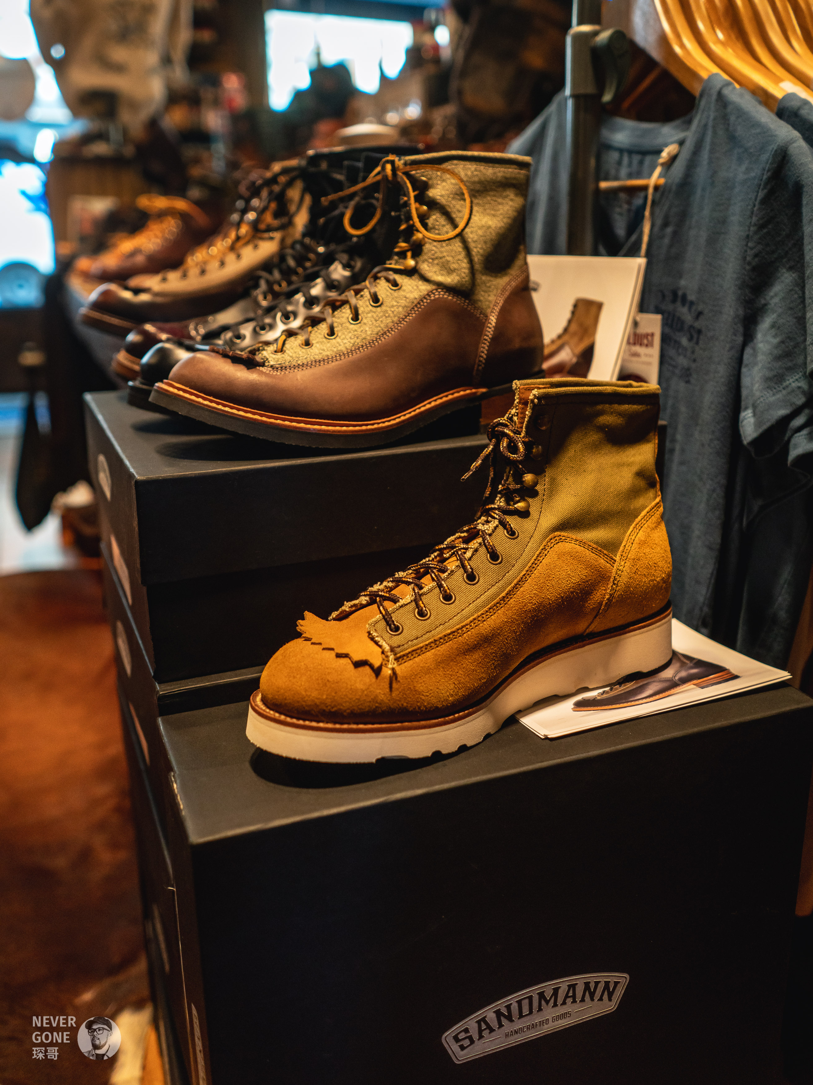 I found a workwear boot brand next to me that I haven’t seen much: Sandmann. The boss introduced it as a brand from Germany. I think the price is similar to Red Wing, and the pattern has its own ideas. The workmanship details look obviously better than Red Wing. They are all crafted in goodyear construction but they prefer to use storm welt with decorative stitches