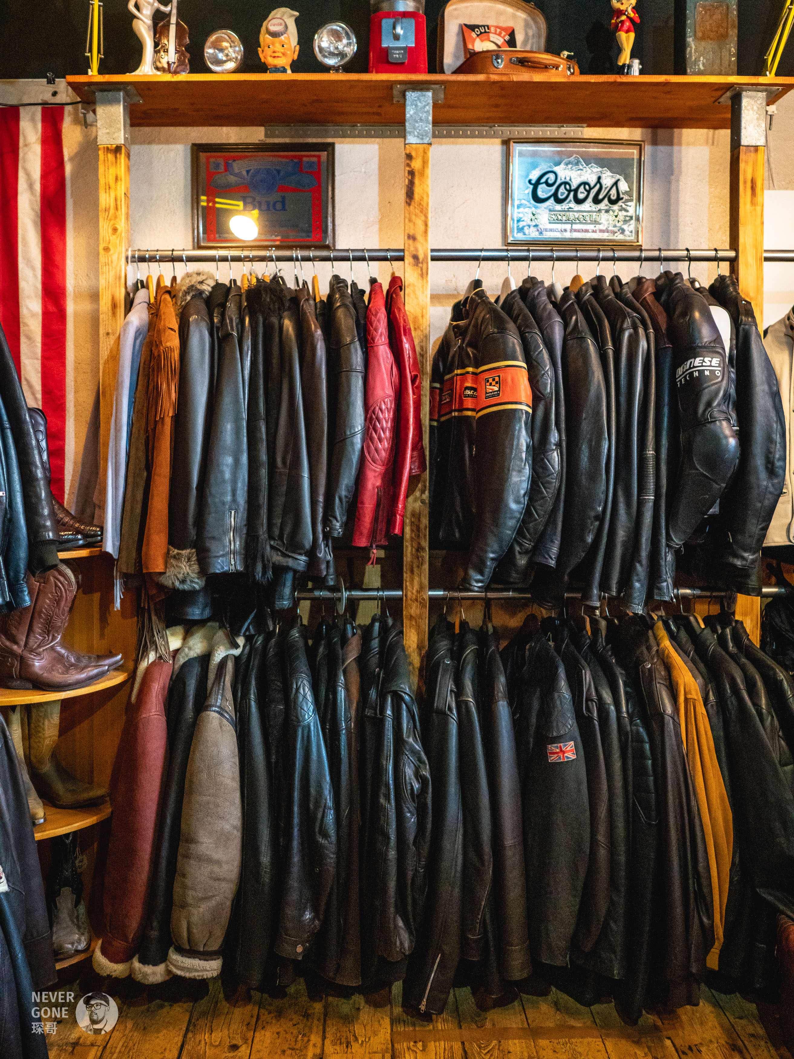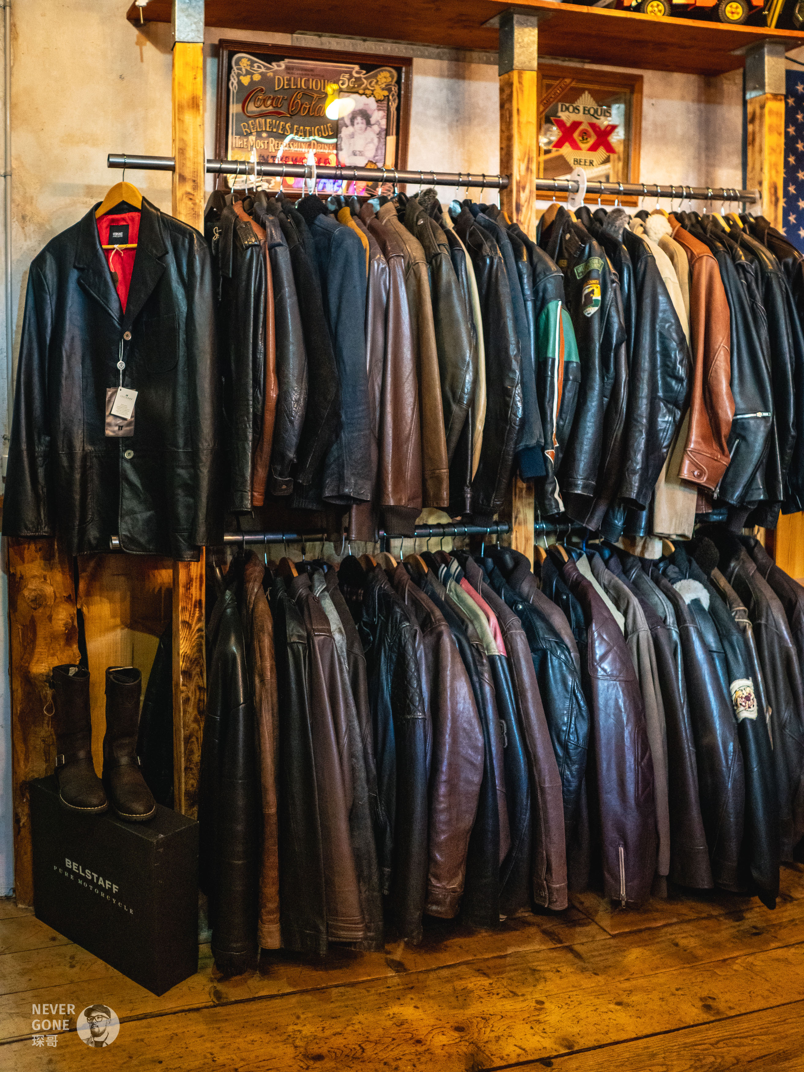 这里摆着各种皮衣,有新的也有店主收来的二手,有些老皮衣的状态很不错