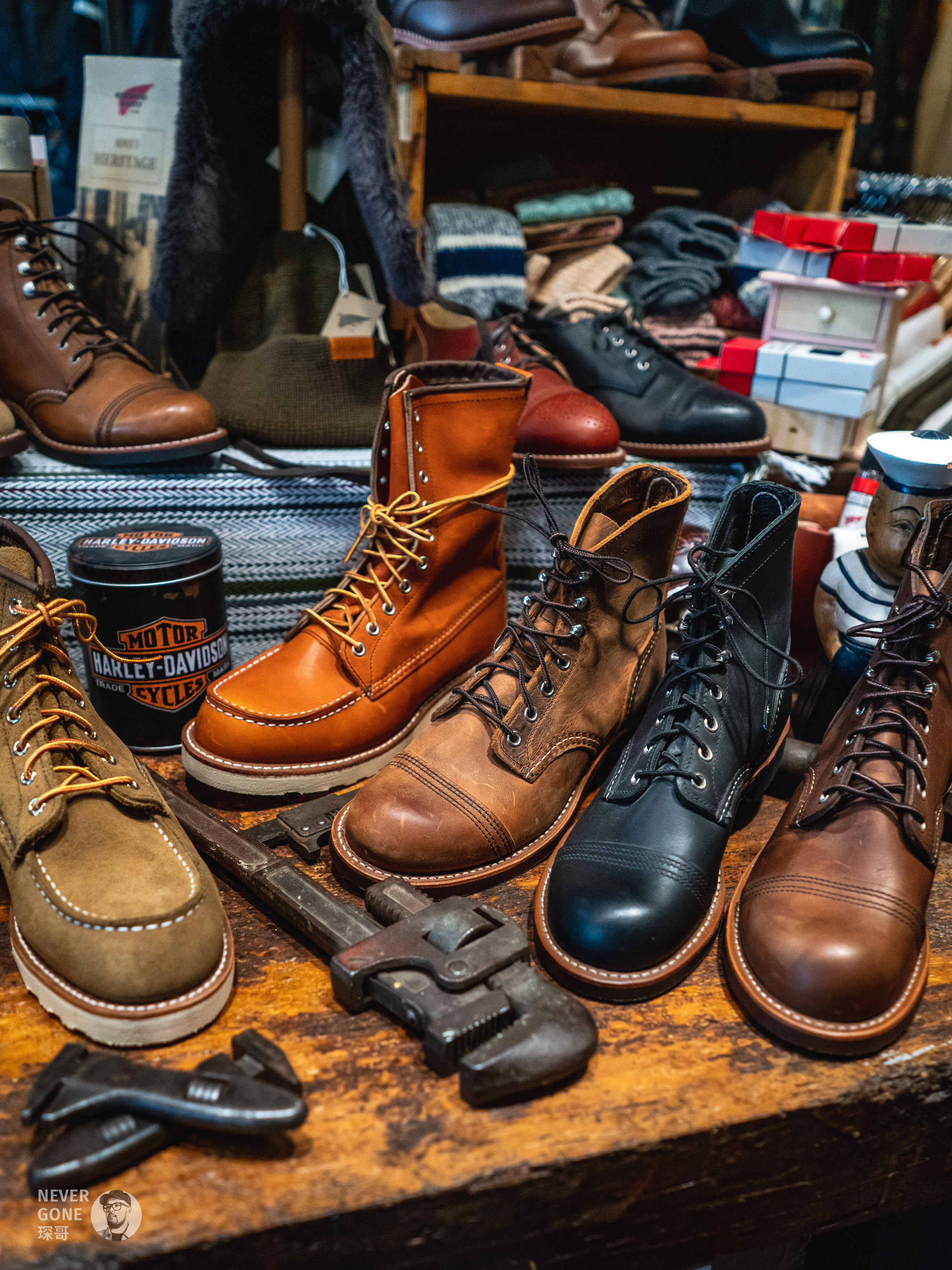 旁边是我比较懂的东西了,各种靴子,以红翼为主,还有少量的Chippewa和Pike Brothers