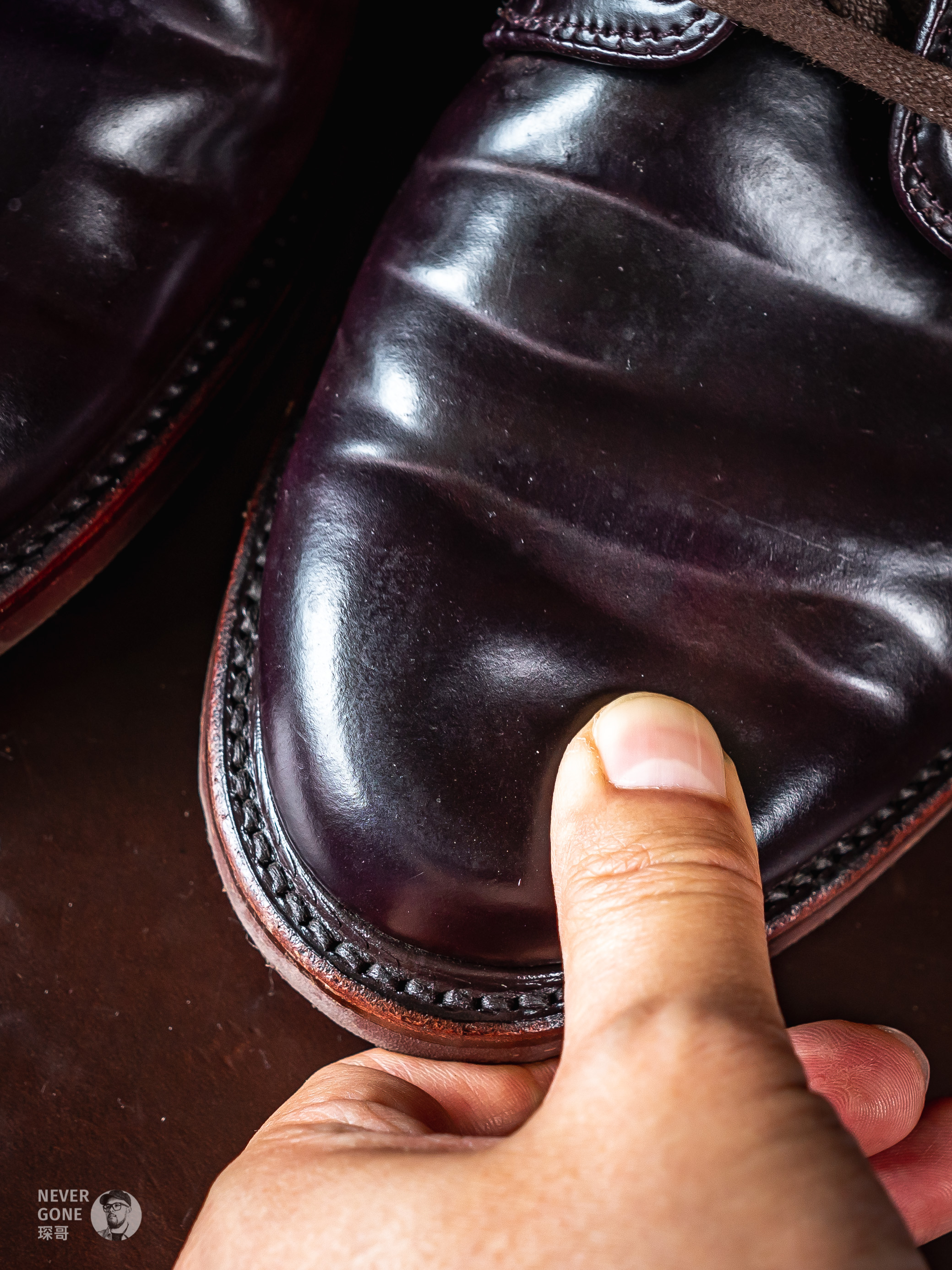 这双鞋舌下料有点意思,正好把马臀背后的Horween霍尔文印章都露出了