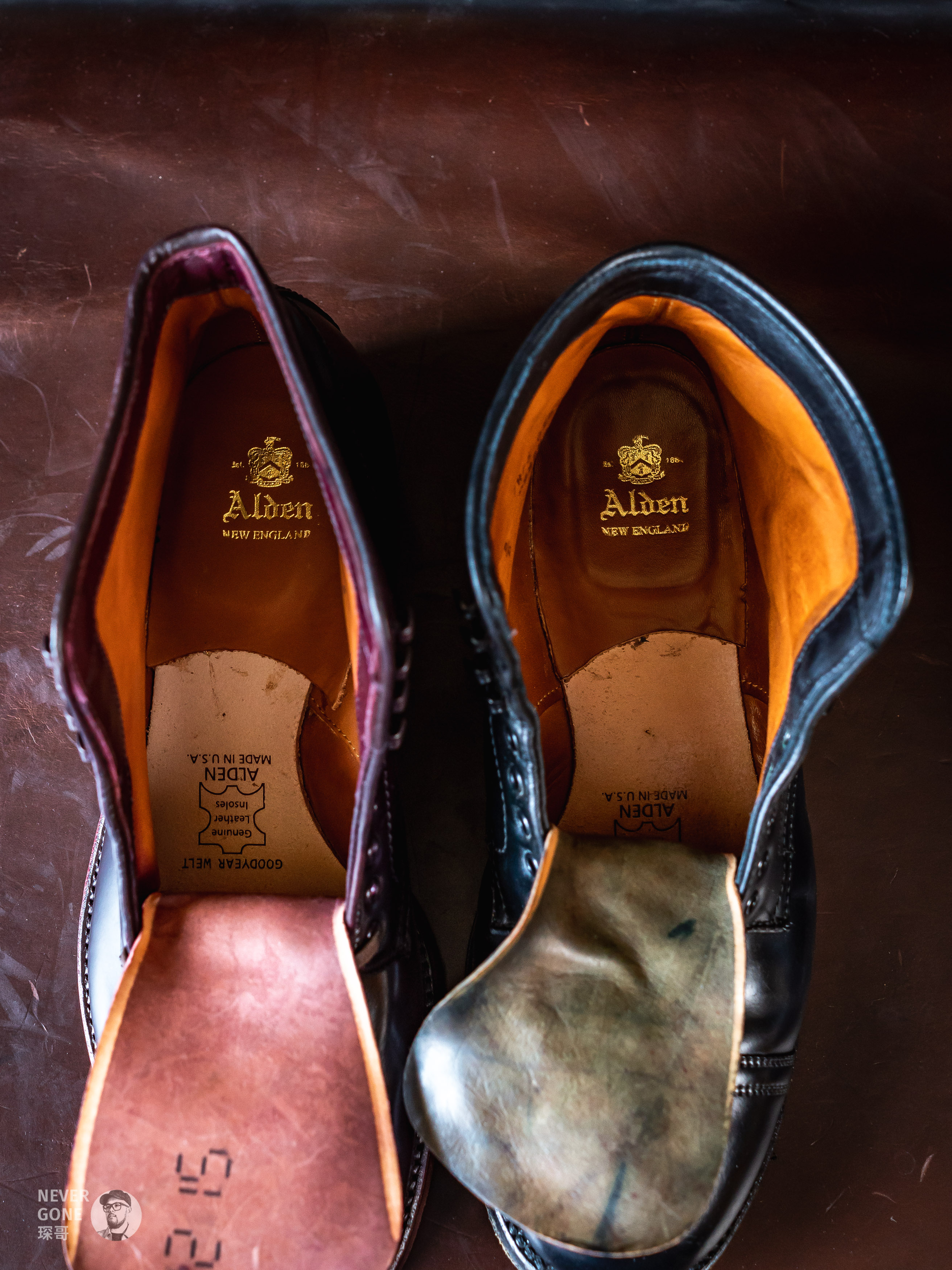M楦的特点就是鞋腰有点收,并且内足弓的凸起程度(一般泛指“足弓支撑”)比Alden其他楦要来的更明显