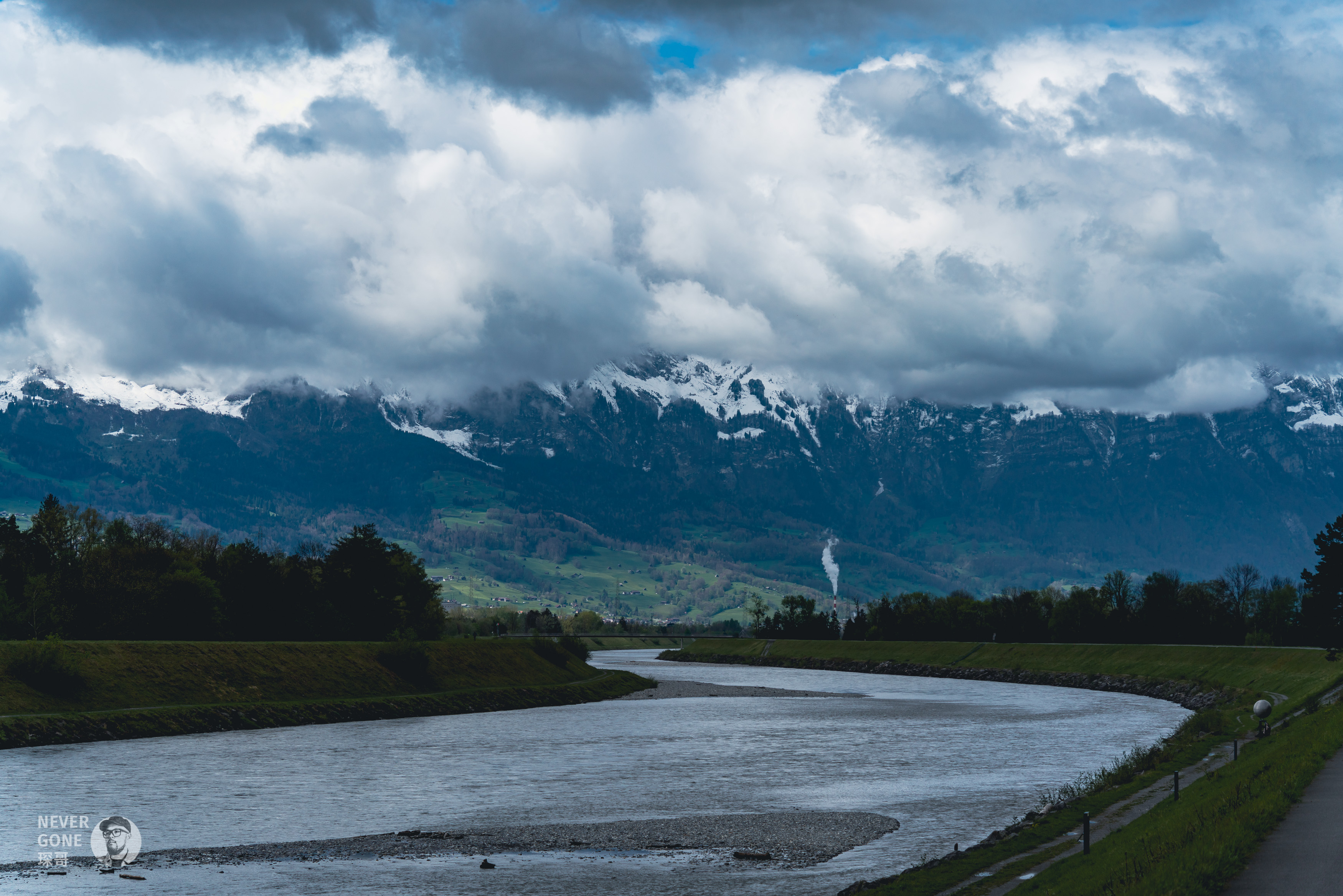 到莱茵河边了,云层很厚挡住了蓝天