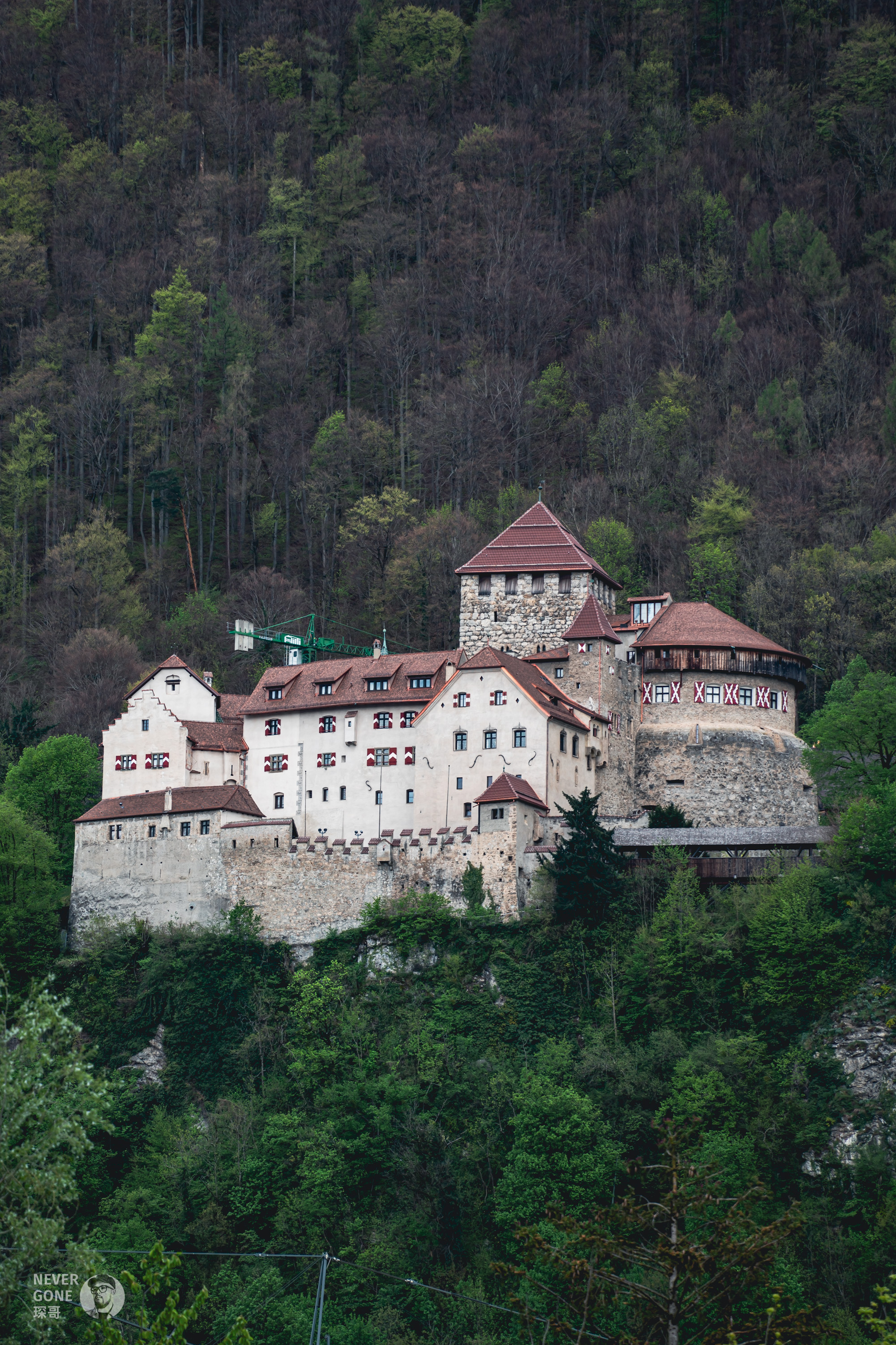 此处地标是瓦杜兹城堡,这座城堡建于12世纪,是列支敦士登的象征,也是皇室的住宅。它坐落在三姐妹山的半山腰,从市中心抬头就能看到,非常显眼。国王在里面可以每天俯瞰整座首都,真正的王