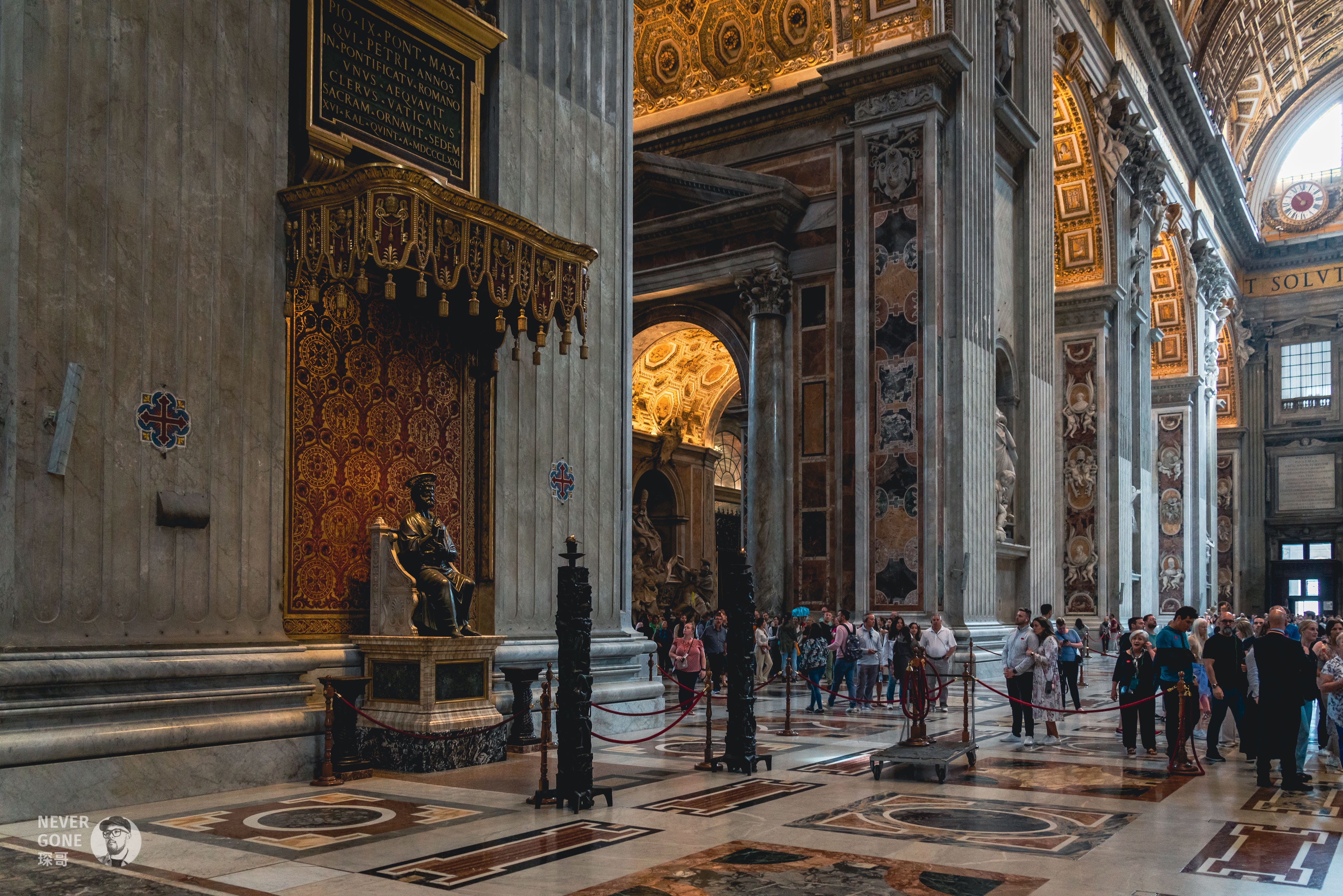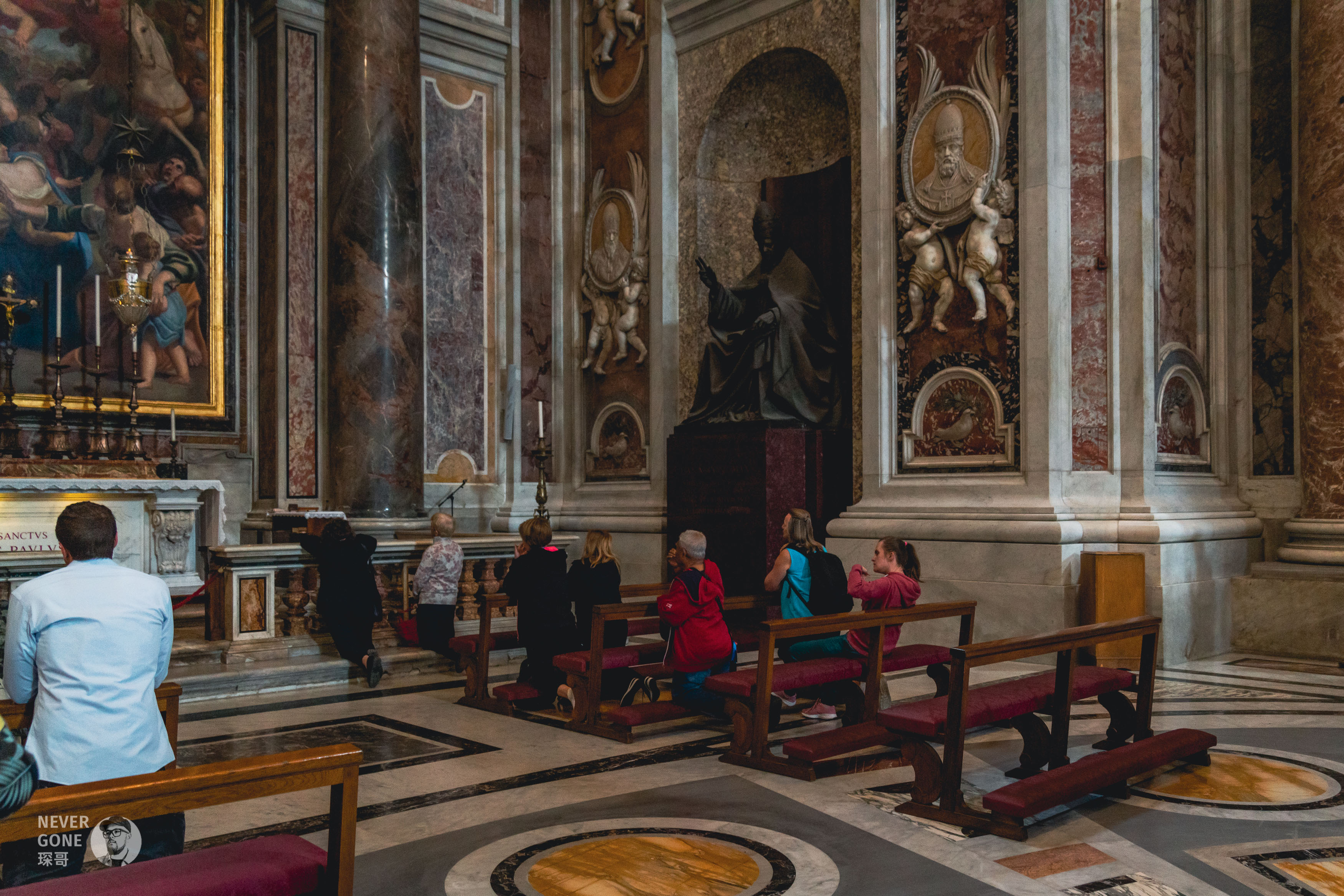 圣彼得铜像,据说摸他的右脚可以得到神的保佑和好运,所以多年来各种游客信徒把他右脚摸的变小了,脚趾也没了。现在已经被隔开,没法摸了