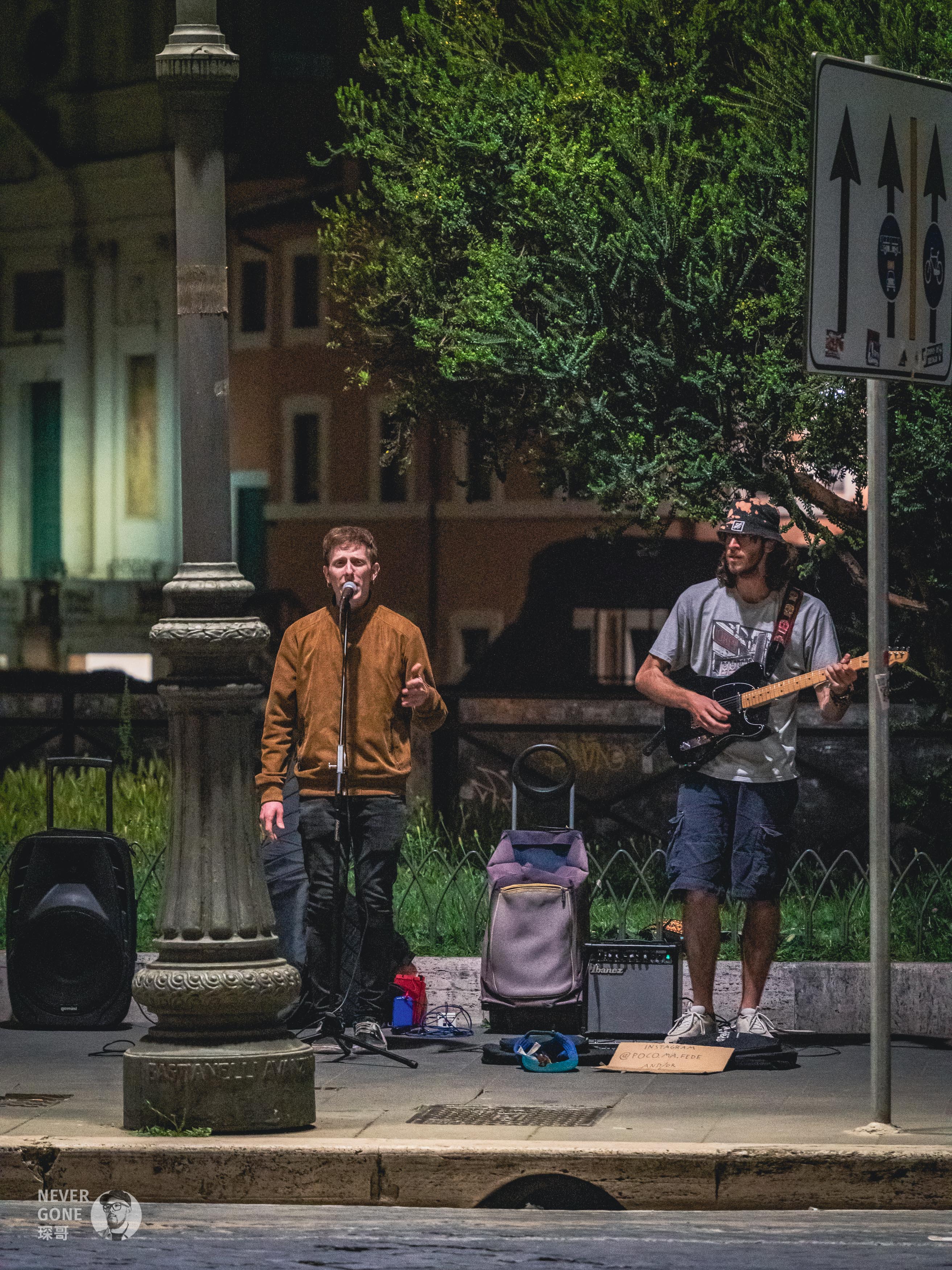 晚上在古罗马大道上的街头艺人,氛围很不错