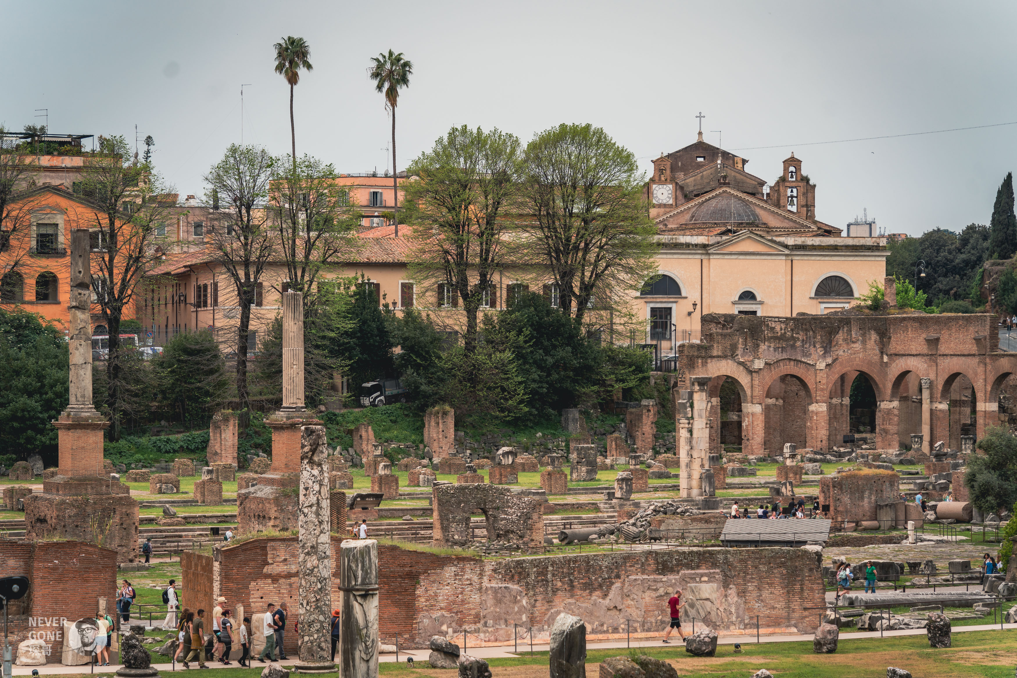 大道两边全是各种遗迹,整个罗马古城如今就是一个巨大的露天博物馆