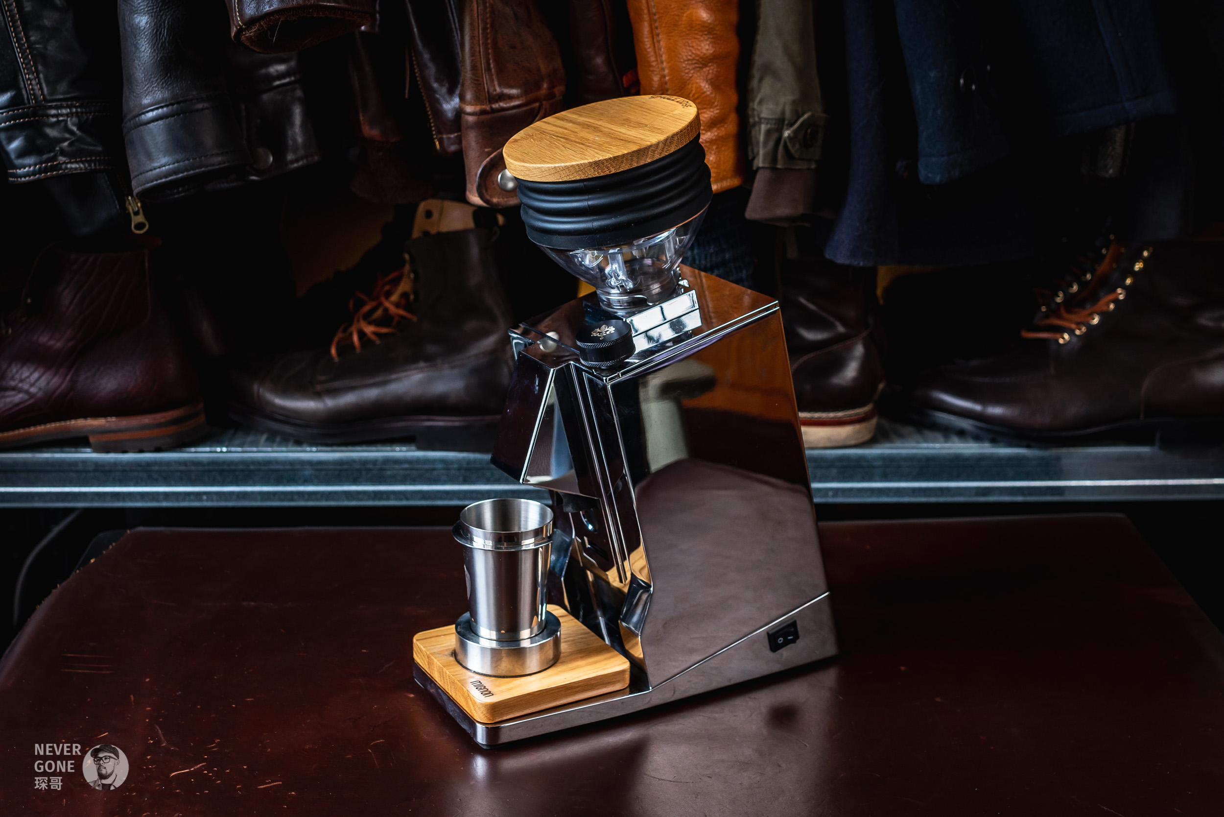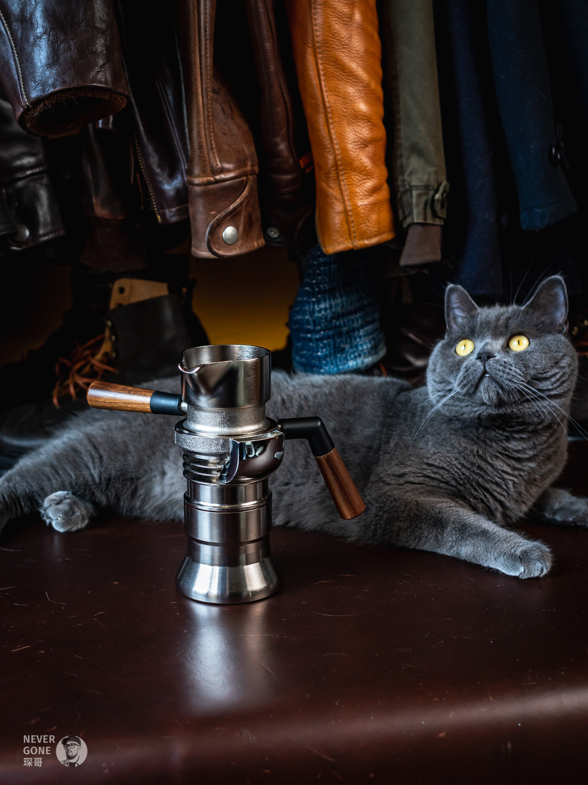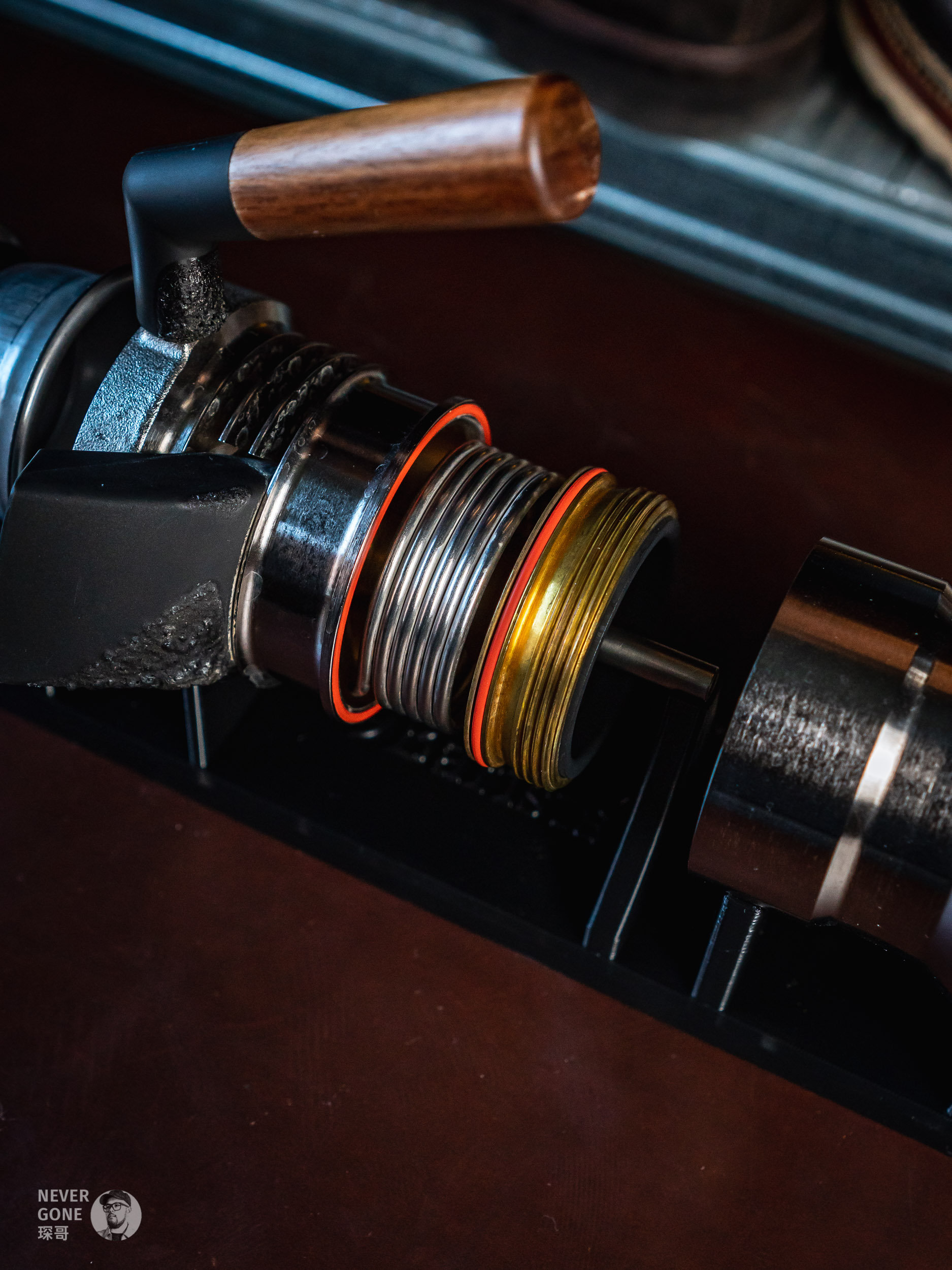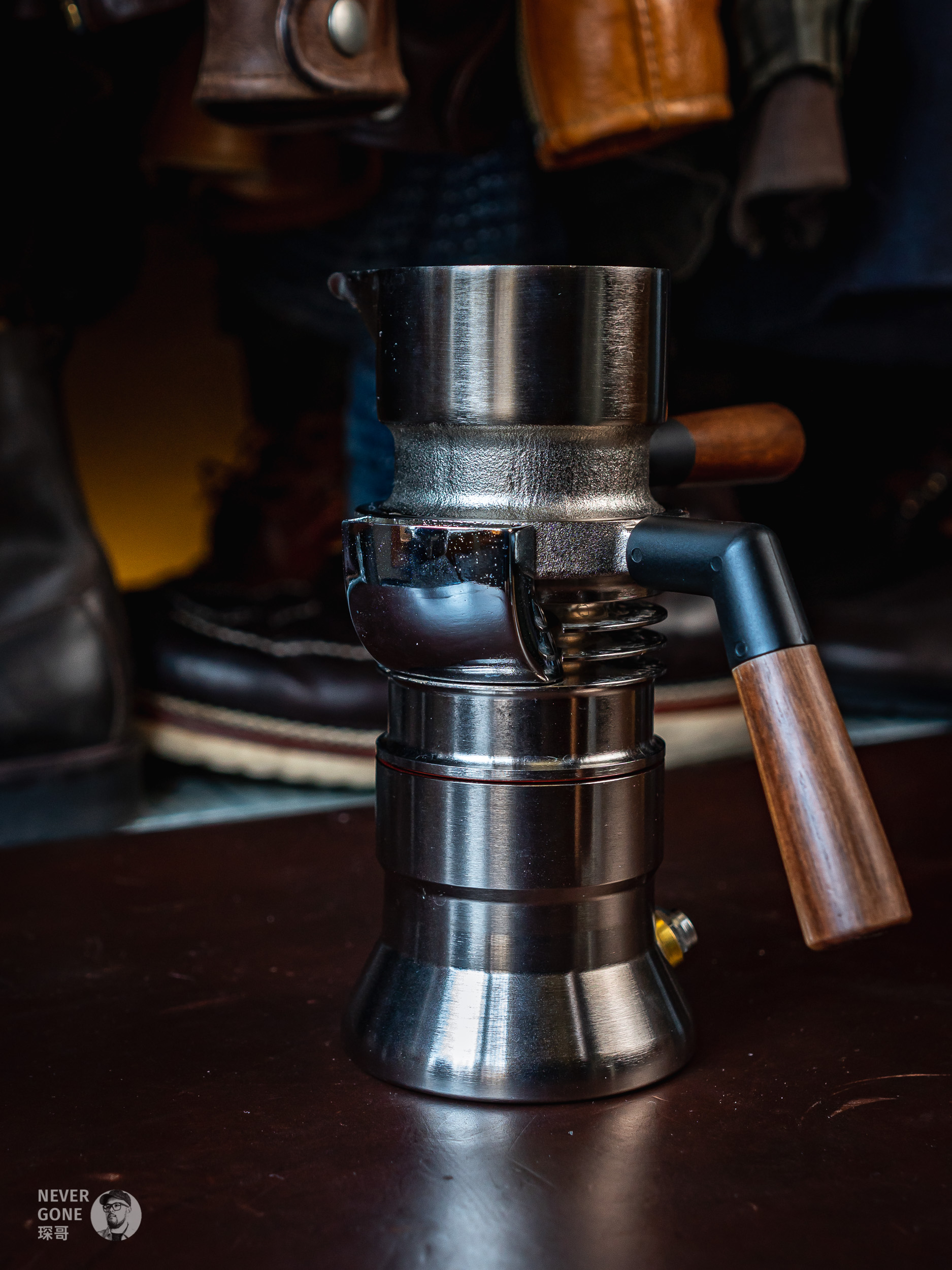 手压有看过Flair 58啥的,但也觉得占地方。气压的话觉得定期买气瓶很麻烦也排除了,最后就只剩下了9 Barista。这种蒸汽朋克风格的金属玩具,再配上那个展示架,感觉十分戳我,而且和我喜欢的皮料、意大利Metalsistem工业风货架等等都挺搭的