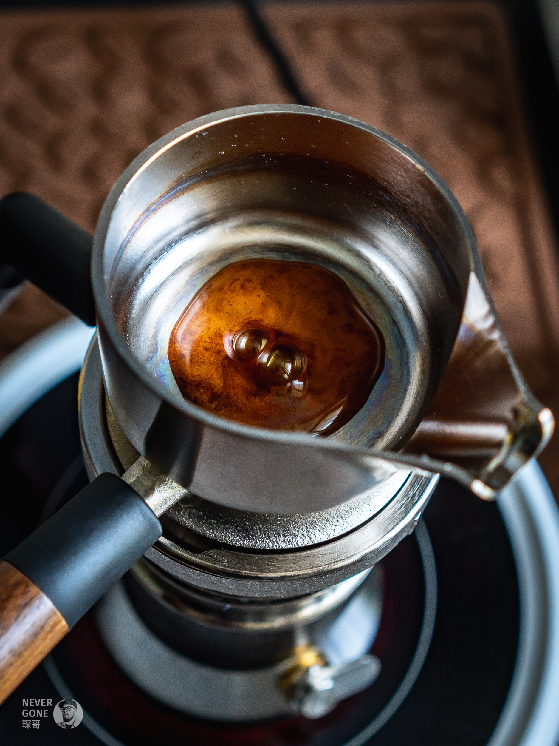 关于热源:可以明火+导热板(时刻注意别把原装塑料烟囱烧化了),也可以电陶炉。热源功率一定要够,刚开始用的原来摩卡壶的小电陶炉,温度不够,加热很久都无法出液,现在回想起来有点危险,还好用到现在没有遇到泄压炸壶等情况